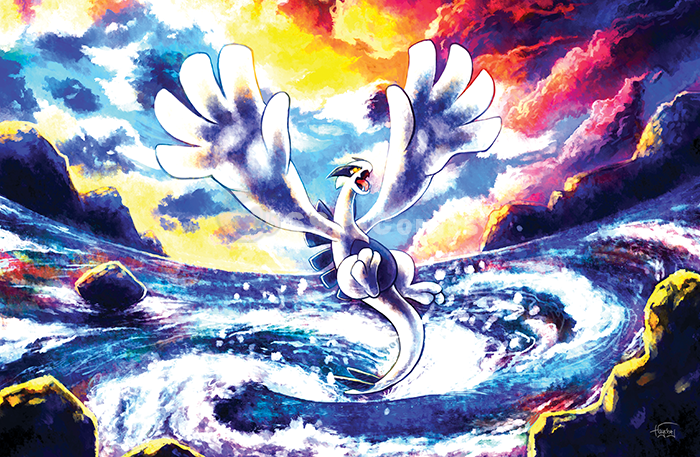 The maelstrom parts the turbulent sea. The legendary Lugia emerges.